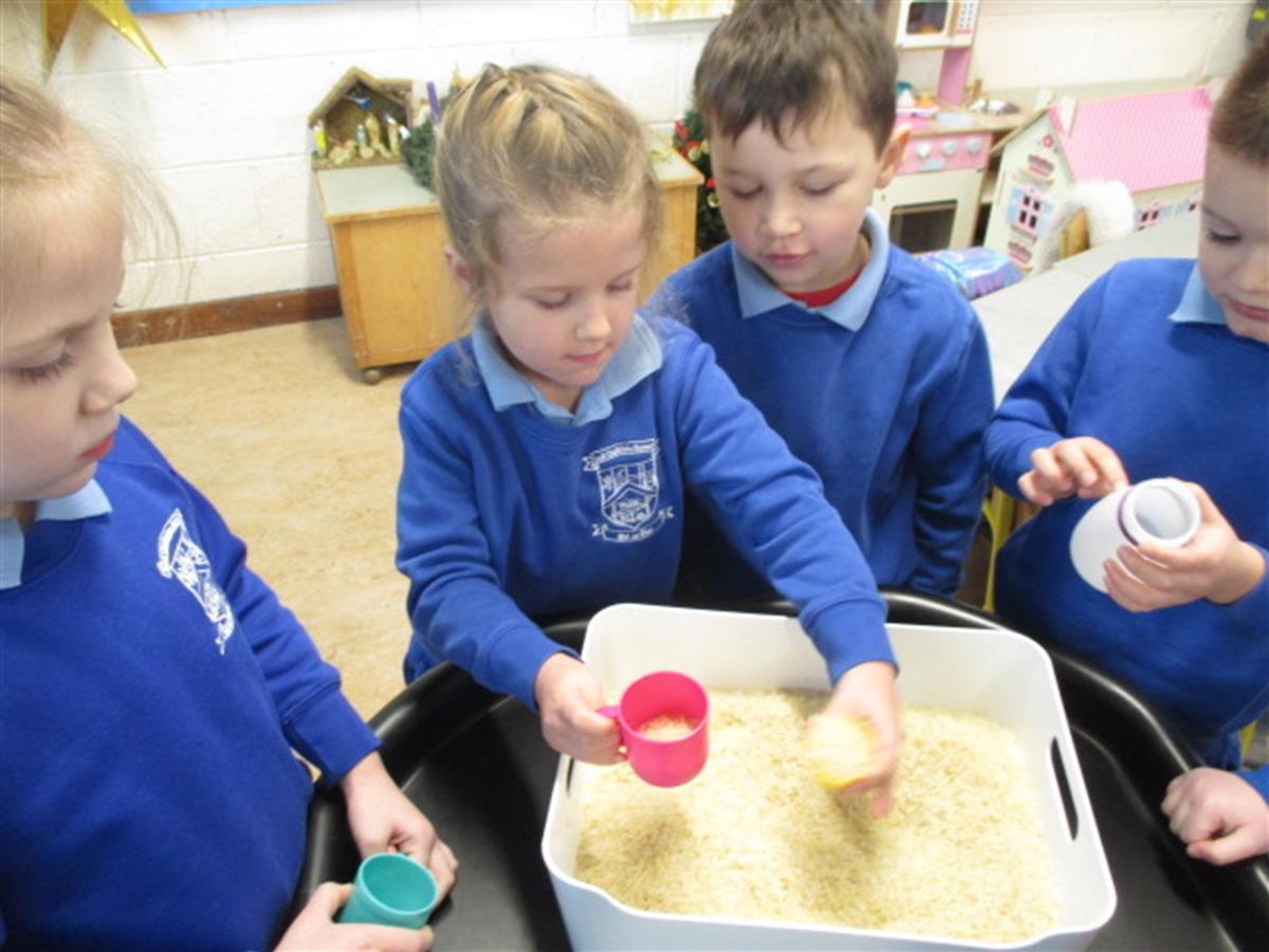We are learning all about capacity. Containers that are full, empty, almost full, almost empty.